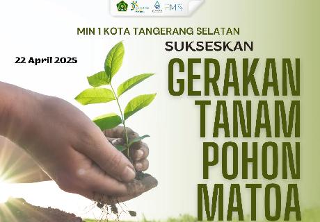 Dalam rangka memperingati Hari Bumi pada 22 April 2025, MIN 1 Kota Tangerang Selatan turut menyukseskan Gerakan Tanam Pohon Matoa sebagai langkah nyata kepedulian terhadap kelestarian lingkungan hidup. Kegiatan ini menjadi bagian dari upaya membangun kesadaran seluruh warga madrasah akan pentingnya penghijauan dan pelestarian alam. Dengan penanaman pohon...