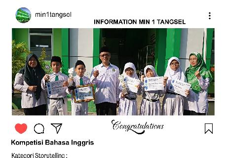 Selamat dan apresiasi setinggi-tingginya kepada siswa-siswi MIN 1 Kota Tangerang Selatan atas prestasi membanggakan di Kompetisi Bahasa Inggris yang diselenggarakan oleh Bimbel Rajin ID pada 26 April 2025 tingkat Kota Tangerang Selatan. Dalam kategori Storytelling, Calief Arzachel Arisandy (4 Anatolia) meraih Juara 2, Ann...