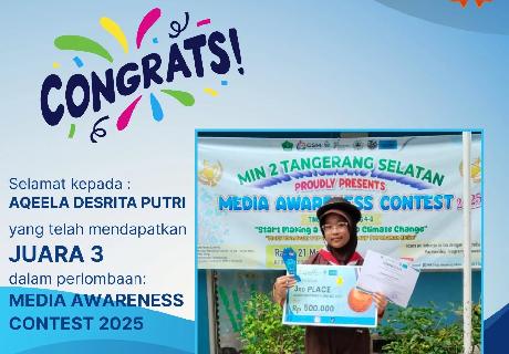 Congratulations to Aqeela Desrita Putri, siswa kelas 5 Sarajevo MIN 1 Kota Tangerang Selatan, atas prestasi membanggakan meraih Juara 3 dalam lomba Media Awareness Contest 2025 yang diselenggarakan di MIN 2 Tangerang Selatan. Perlombaan ini bertujuan meningkatkan kesadaran siswa terhadap pemanfaatan media secara bijak, sekaligus mengajak generasi muda un...