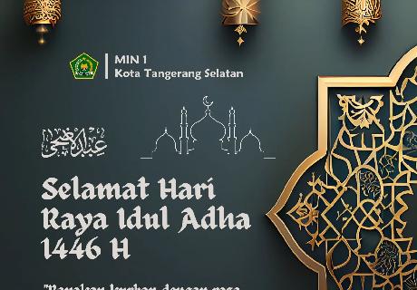 MIN 1 Kota Tangerang Selatan mengucapkan Selamat Hari Raya Idul Adha 1446 H kepada seluruh warga madrasah dan masyarakat muslim. Idul Adha menjadi momentum untuk menumbuhkan nilai keikhlasan, memperkokoh rasa syukur, serta mempererat solidaritas sosial melalui ibadah kurban. Mari rayakan Idul Adha dengan penuh rasa syukur dan jalani hidup dengan hati yang lembut, agar semangat pengorbanan dan...